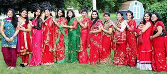 Teej est une grande fête pour les femmes qui cette année 2015 tombe le 16 septembre (30 Bhadra 2072 dans le calendrier lunaire népalais). On honore à cette occasion le dieu Shiva et son épouse Parvati et les femmes mariées prient pour la longévité et le bonheur de leur époux et de leur mariage, et les célibataires pour trouver un bon mari. La veille de la fête les réjouissances durent tard dans la nuit et l’on se régale de toutes sortes de mets appelés dar khane, car le lendemain sera pour les femmes de stricte observance un long jour de jeûne complet sans eau. L’ambiance est néanmoins joyeuse voire exubérante, et les femmes se retrouvent en masse, toutes vêtues de rouge, couleur symbole de bonheur, dans les temples de Shiva. Le lendemain les femmes se lèvent tôt pour célébrer un rituel (puja) consistant en offrande de bananes et de basilic sacré (tulsi patta), après quoi seulement elles peuvent rompre leur jeûne. Le surlendemain, dans la pure tradition, les femmes doivent prendre un bain de boue coloré de rouge avec les racines et les feuilles d’un arbuste sacré (le Datiwan), après quoi elles sont considérées comme lavées de tous leurs péchés.